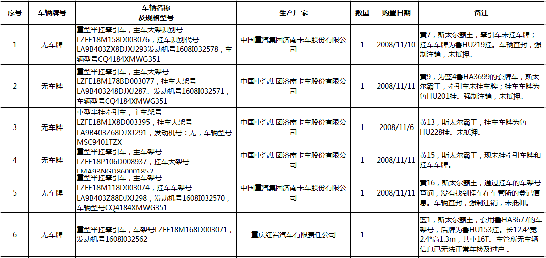 5、脫審貨車12輛(詳見清單),參考價27.2萬元,保證金5萬元。