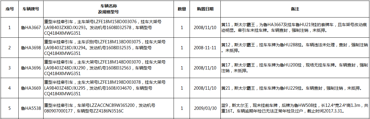 1、車輛4臺整體拍賣(詳見清單),參考價49萬元,保證金10萬元。