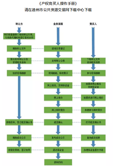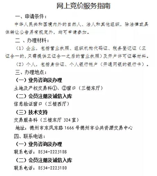 有意參加競價者,須登錄德州市公共資源交易平臺網上交易系統(http://www.dzzyjy.gov.cn),按《國有產權網上競價服務規程》、《產權競買人操作手冊》規定的操作程序參加競買(詳情見“轉讓文件”)。