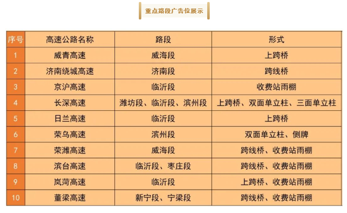 受委托,我公司定于2022年5月24日10:00通過金拍網(https://www.jinpaiwang.com.cn/home)對山東省內部分路段高速公路廣告牌三年期租賃權進行公開拍賣,具體情況如下: