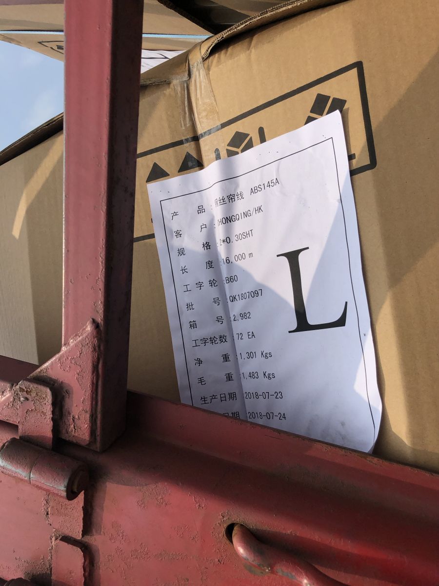 受委托我公司對鋼絲簾線一宗進行招商,共16箱,19.484噸。